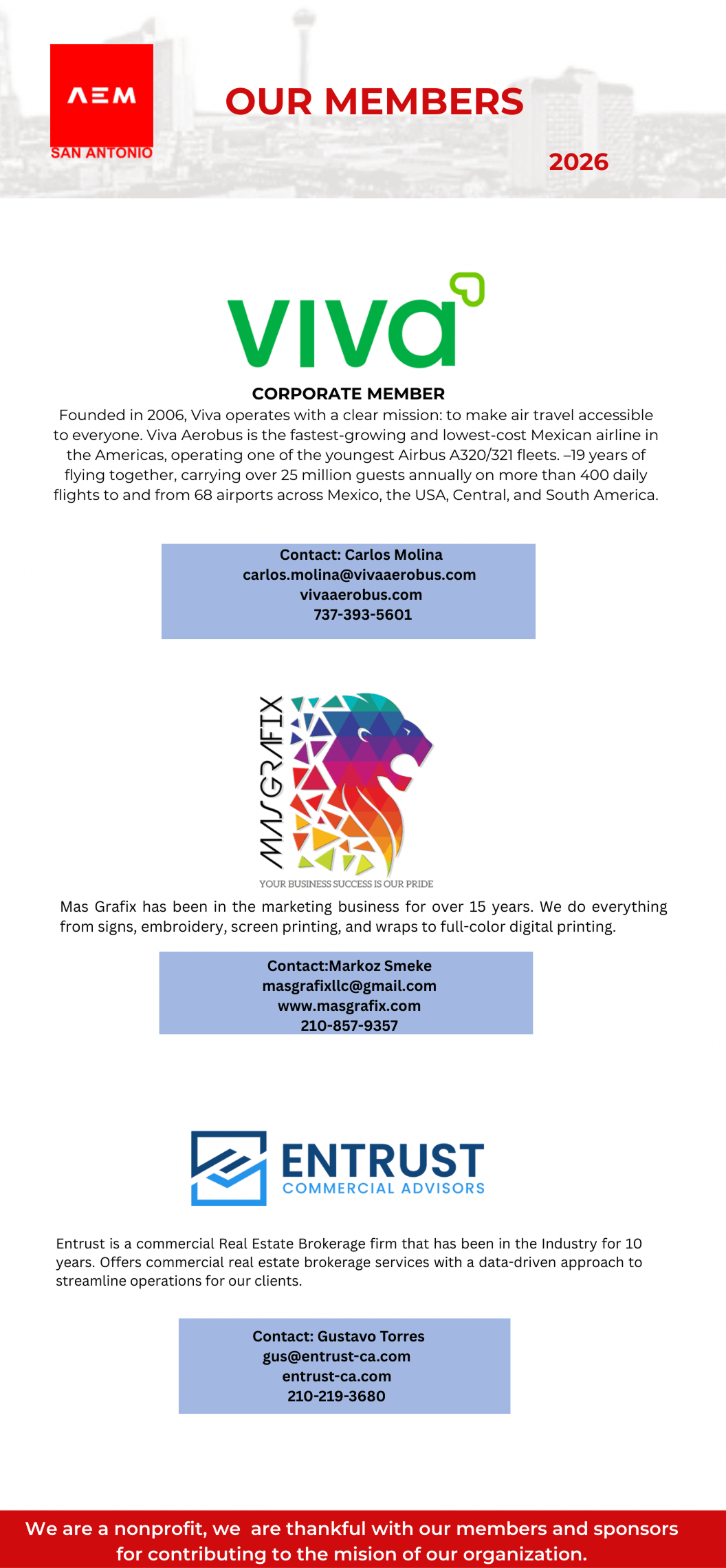 - To be recognized as one of the most relevant business association at the San Antonio area.